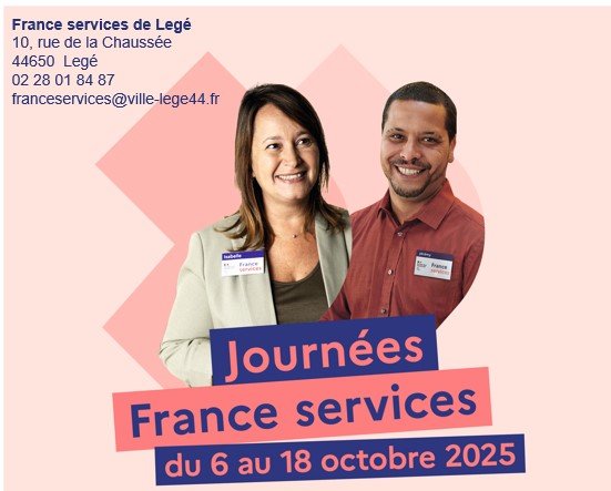 Retrouvez en pièce jointe les évènements d'octobre de FRANCE SERVICES à LEGE. France Services Legé. 10, rue de la Chaussée. Legé. 02 28 01 84 87. franceservices@ville-lege44.fr