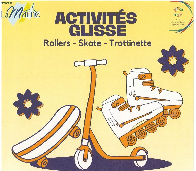 ACTIVITÉS GLISSE Rollers-Skate-Trottinette. D'octobre à décembre le mercredi de 14h à 15h30. CITY DE LA MARNE . PRÉVOIR SON MATÉRIEL. Réservé aux 9-14 ans. animation@ci2s-44.fr. 06 31 75 17 72. 30 euros